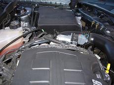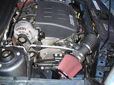 - Removed the stock air box and replaced with an RActive 3" cone filter and removed the intake resonator in the passenger fender. Notice how I took a sliver of black busted broom
